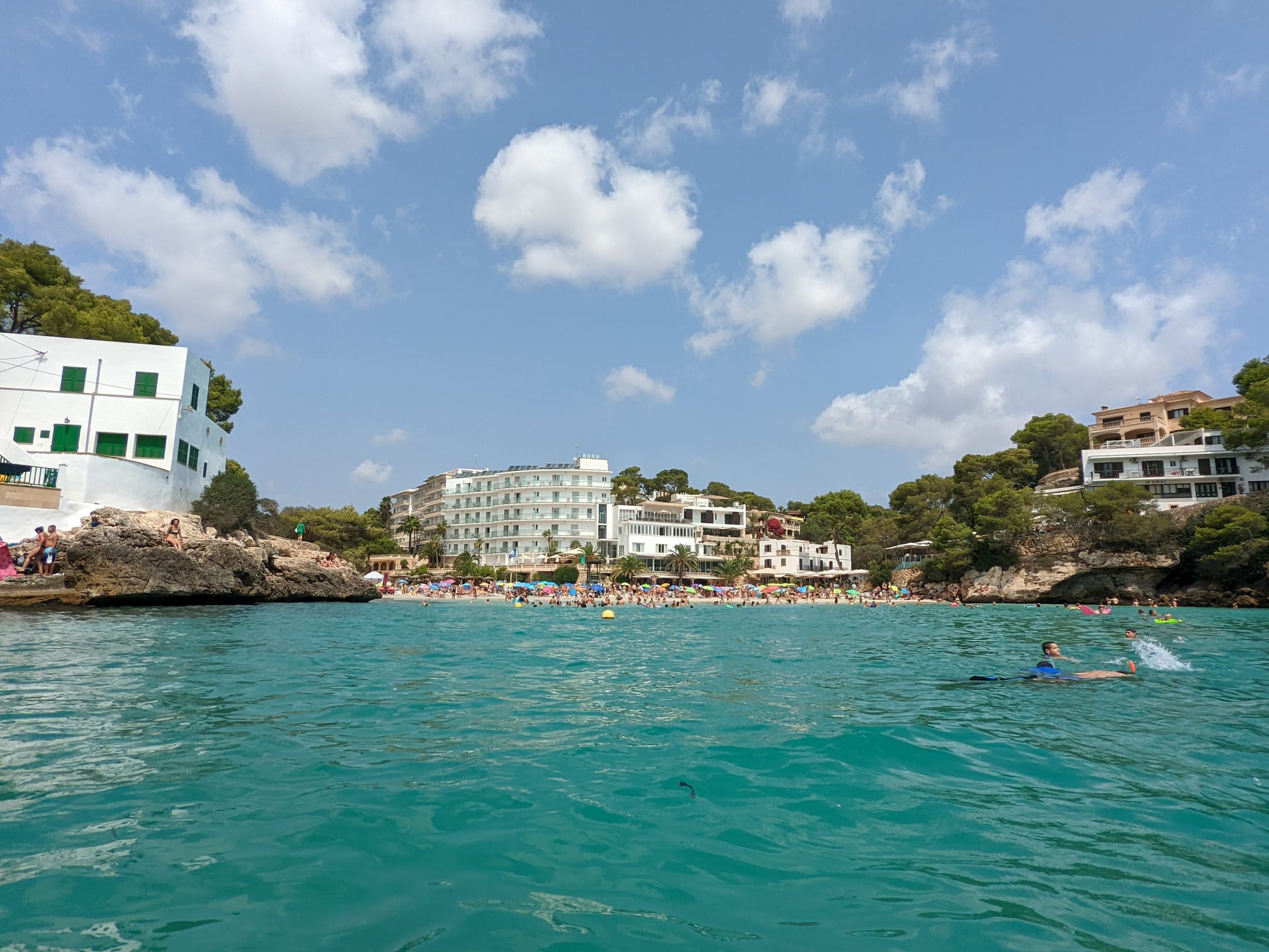 Comenzamos nuestra excursión desde Cala Santanyí, una playa familiar de fácil acceso con toda clase de servicios, que lo hacen un lugar muy turístico que atraerá a multitud de turistas durante el verano. La cala está considerada entre las 20 más bonitas de la isla por sus aguas claras y arenas finas. La playa dispone de plazas de aparcamiento gratuitas cercanas, a las cuales podréis acceder con facilidad siempre y cuando lleguéis a primera hora del día para evitar aglomeraciones. Nosotros recomendamos realizar las rutas a primera hora de la mañana, tanto por el aparcamiento como por el oleaje, recuerda que si todavía no sabéis cómo consultarlo os dejamos por aquí una entrada muy útil.