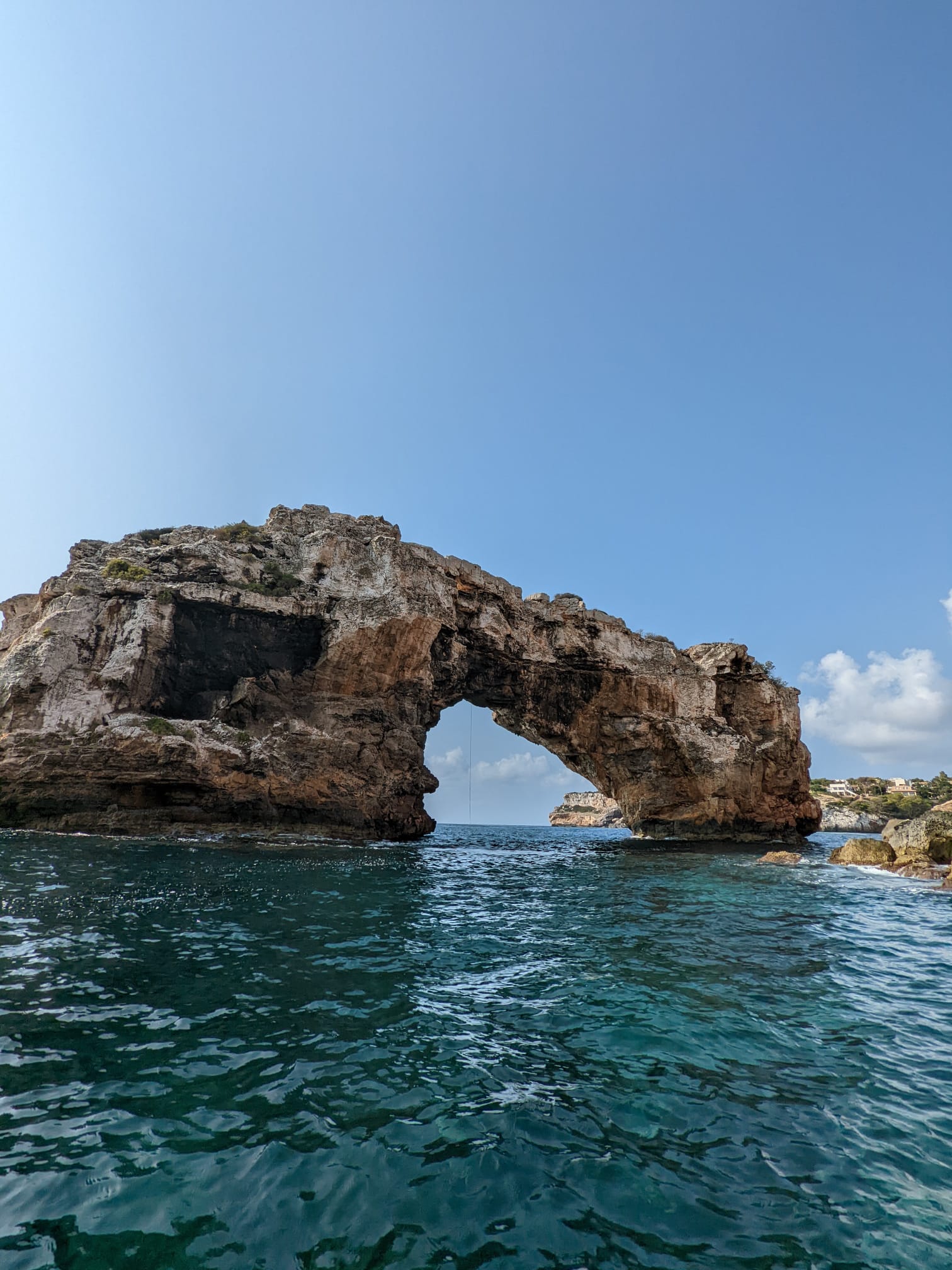 La excursión comienza por el lado derecho de la playa en dirección a Es Pontàs, uno de los mejores monumentos naturales de piedra que encontrarás en Mallorca, con su forma de arco podréis visitarlo con el kayak o paddle surf sin problema y sacaros algunos selfis.