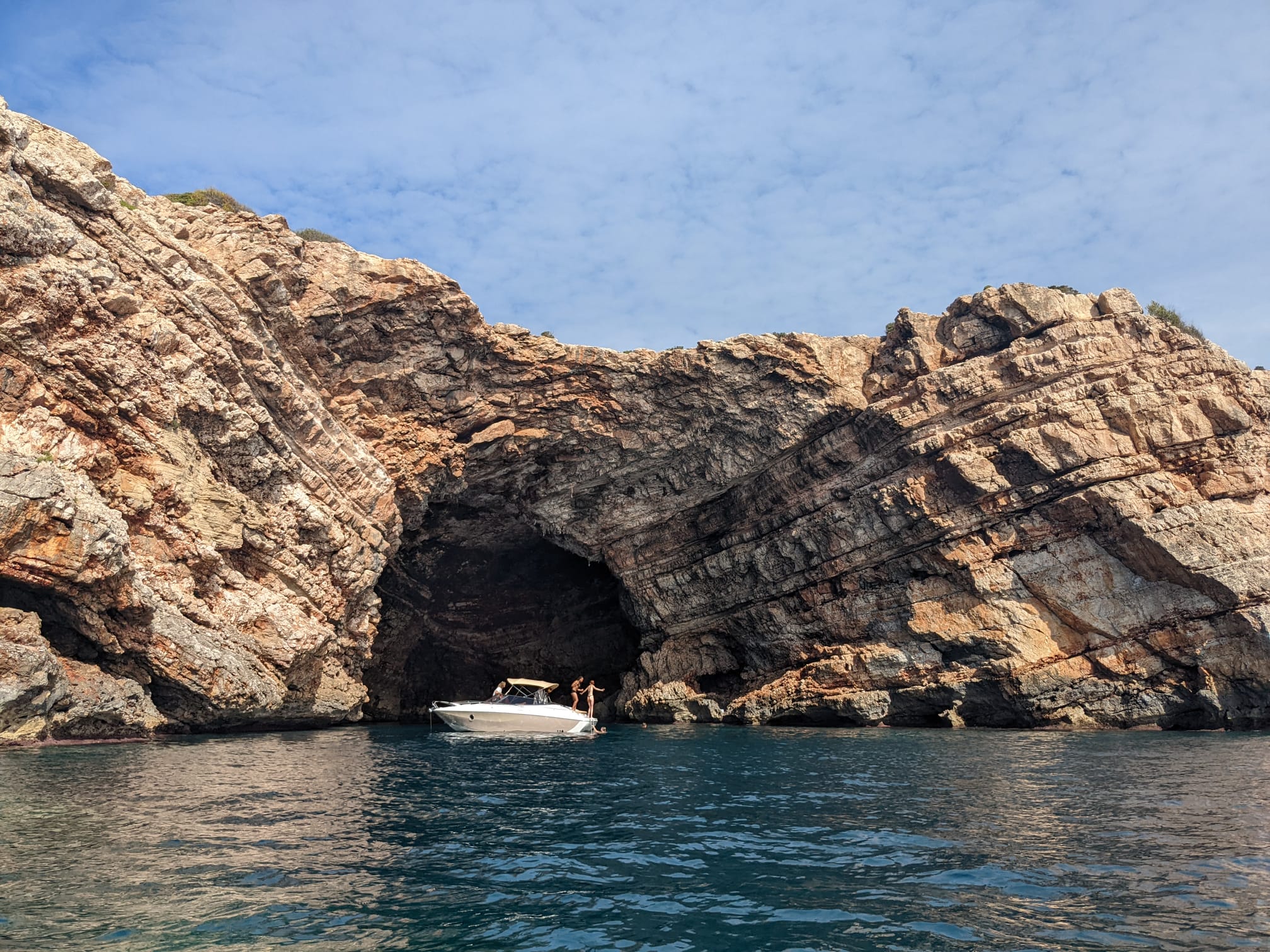Durante la travesía podréis disfrutar de un gran número de cuevas como por ejemplo la Cova de Ses Pedreres, la Cova Foradada o la Cova de Ses Paisses. En el mapa os dejamos una cueva que se encuentra pasando la playa de S’algar y que no podéis perderos, ya que por su paso estrecho muchos turistas no la conocen y por dentro os sorprenderá su amplitud.