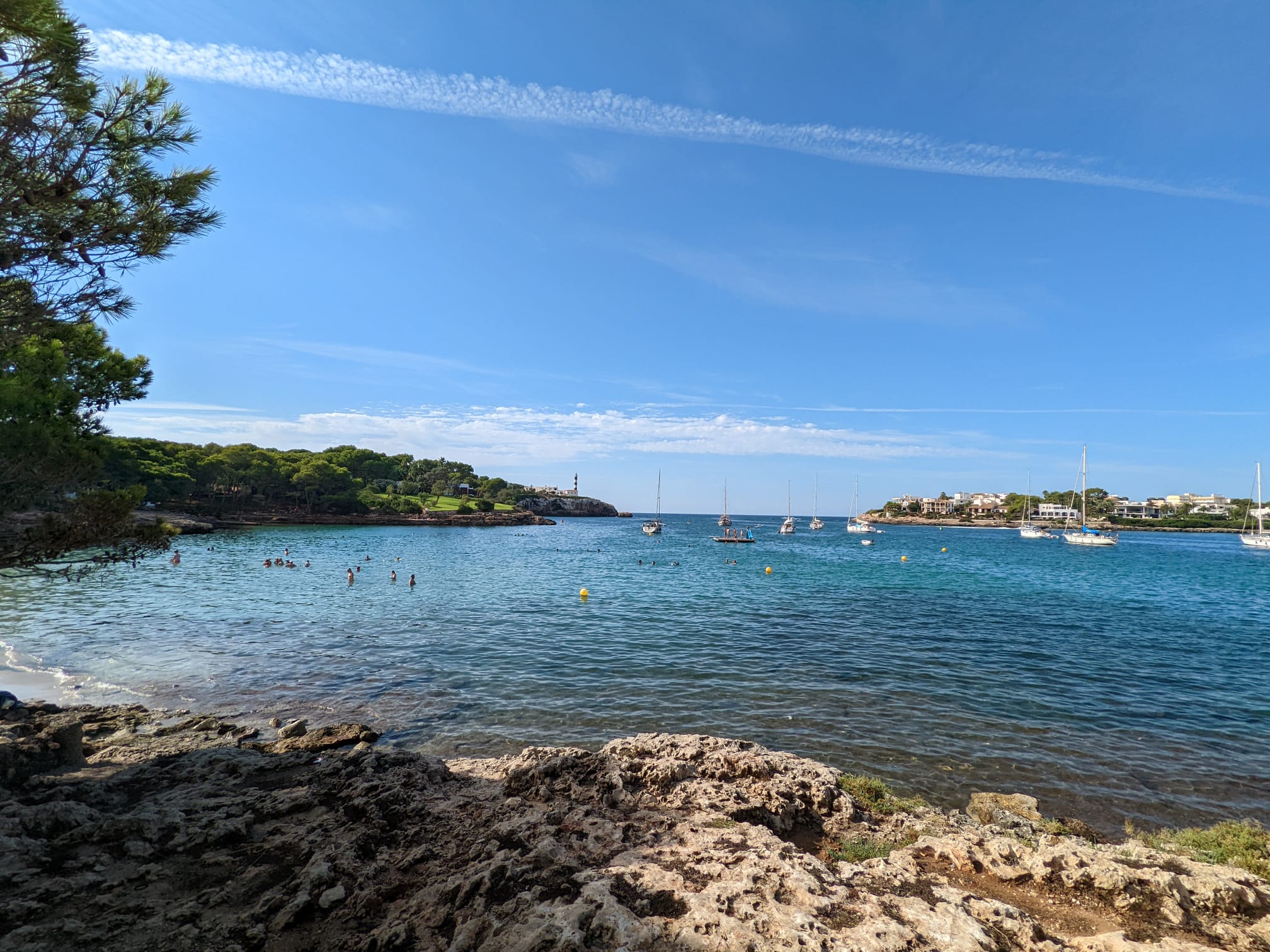 La excursión comienza por el lado izquierdo de la playa en dirección al Faro de Portocolom, uno de los símbolos marítimos más emblemáticos de Mallorca, desde el cual podréis disfrutar de la fusión de naturaleza con las casas de los pescadores.