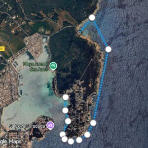 S´Arenal de Portocolom está dividido en dos calas contiguas: s’Arenal Gran y s’Arenal Petit. Nosotros en esta ocasión salimos desde s’Arenal Gran, una playa tranquila, donde principalmente los bañistas son residentes del pueblo. La playa tiene 40 metros de ancho y está rodeada por vegetación que ofrece abundante sombra natural. La cala está muy protegida del viento y del oleaje gracias a la bahía de Portocolom, lo que hace que el agua de normal esté muy tranquila para salir con el kayak o paddle surf, pero de todos modos nosotros os recomendamos que no os olvidéis de consultar el tiempo y el oleaje antes de realizar vuestras rutas.